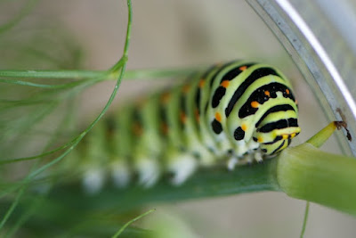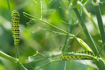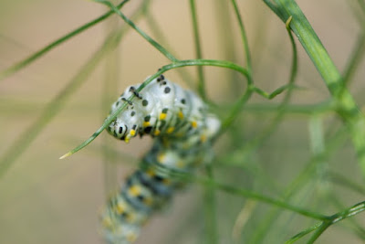 そんなフェンネルを久しぶりに見てみると、きれいな芋虫が居た。我が家の畑では新参者だ。