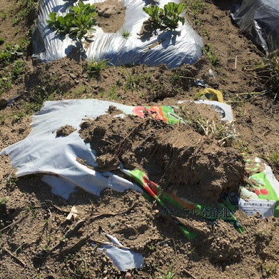 畑で元気がよかったレモングラスを11月中旬に株元で切って、その上に土やビニールを被せている。