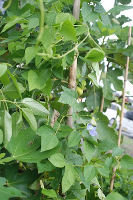 | こちらは日が当たって嬉しそうな四角豆。 まだ花を付けているので、まだまだ実を付けるに違いない。 |