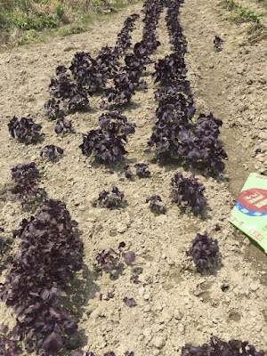 オババん家の畑で、今年は紫蘇を作っていなかったらしいが、昨年育てた紫蘇のこぼれ種から自然発生苗が出ていたらしい。