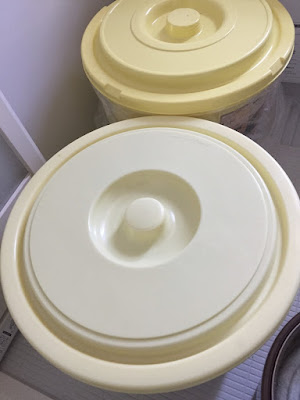 今日は4段に重ねていた、これらの梅漬けの樽を1段づつ下ろして、蓋をしておいた。