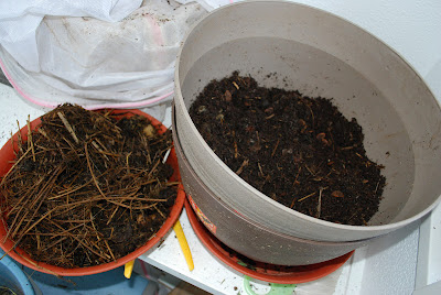 もちろん,残った繊維はもう一度下のミミズ小屋(新しい畑コン1号)に戻されることになる