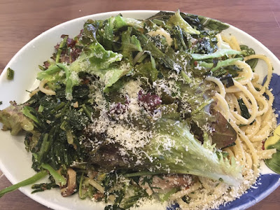 で、今日のスパゲッティにはこのカタルーニャと先日収穫したプンタレッレの2種類のリーフチコリーが入っていた。