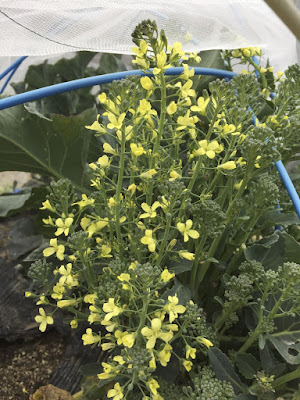 さて、ブロッコリーは、もともと花蕾と呼ばれるトウが立ったものを食べているのだが、この時期になって少しづつ花が咲き始めている。