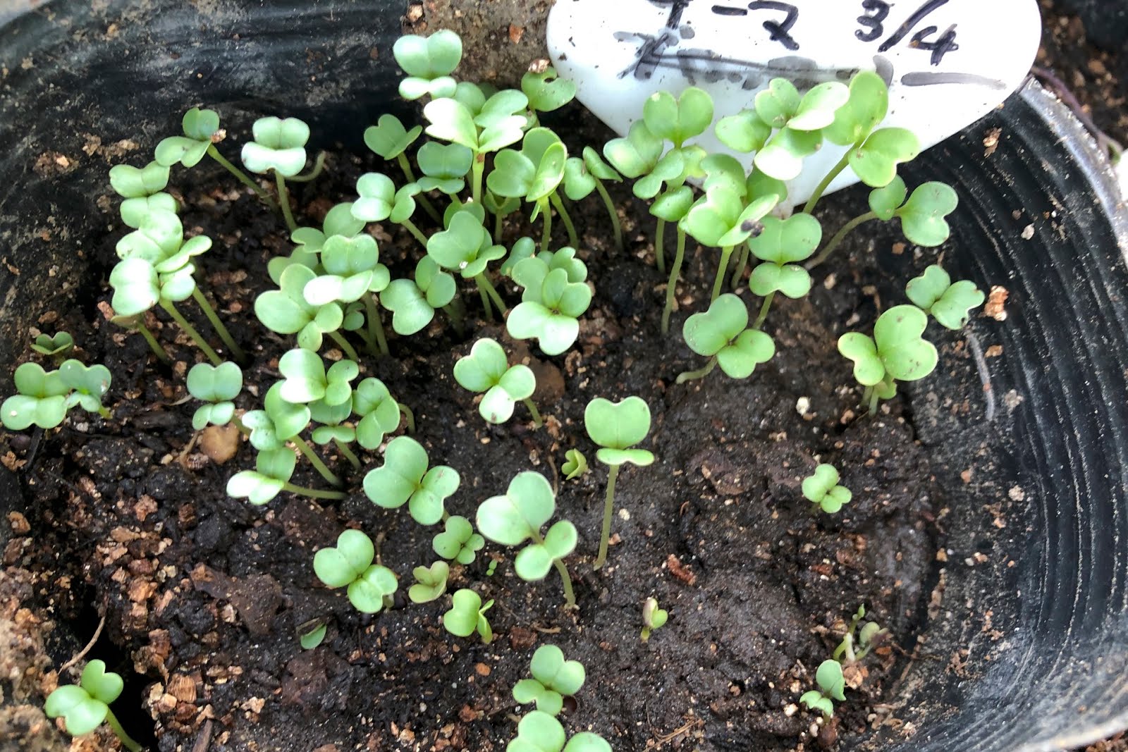 ところで、ブロッコリーと同じアブラナ科のチーマディラーパとスペインキャベツは種から苗を育てる予定で、先日大きめのポットに種をまいていた。