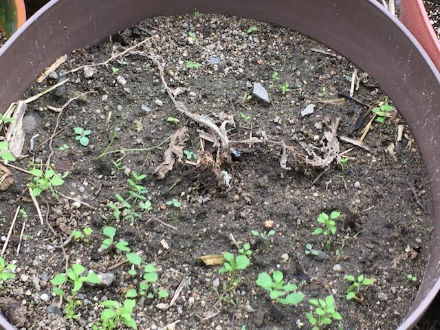 今日見てみると、周りに雑草は生えてきたが、残念ながら移植したアーティチョークは見事に枯れてしまっていた。