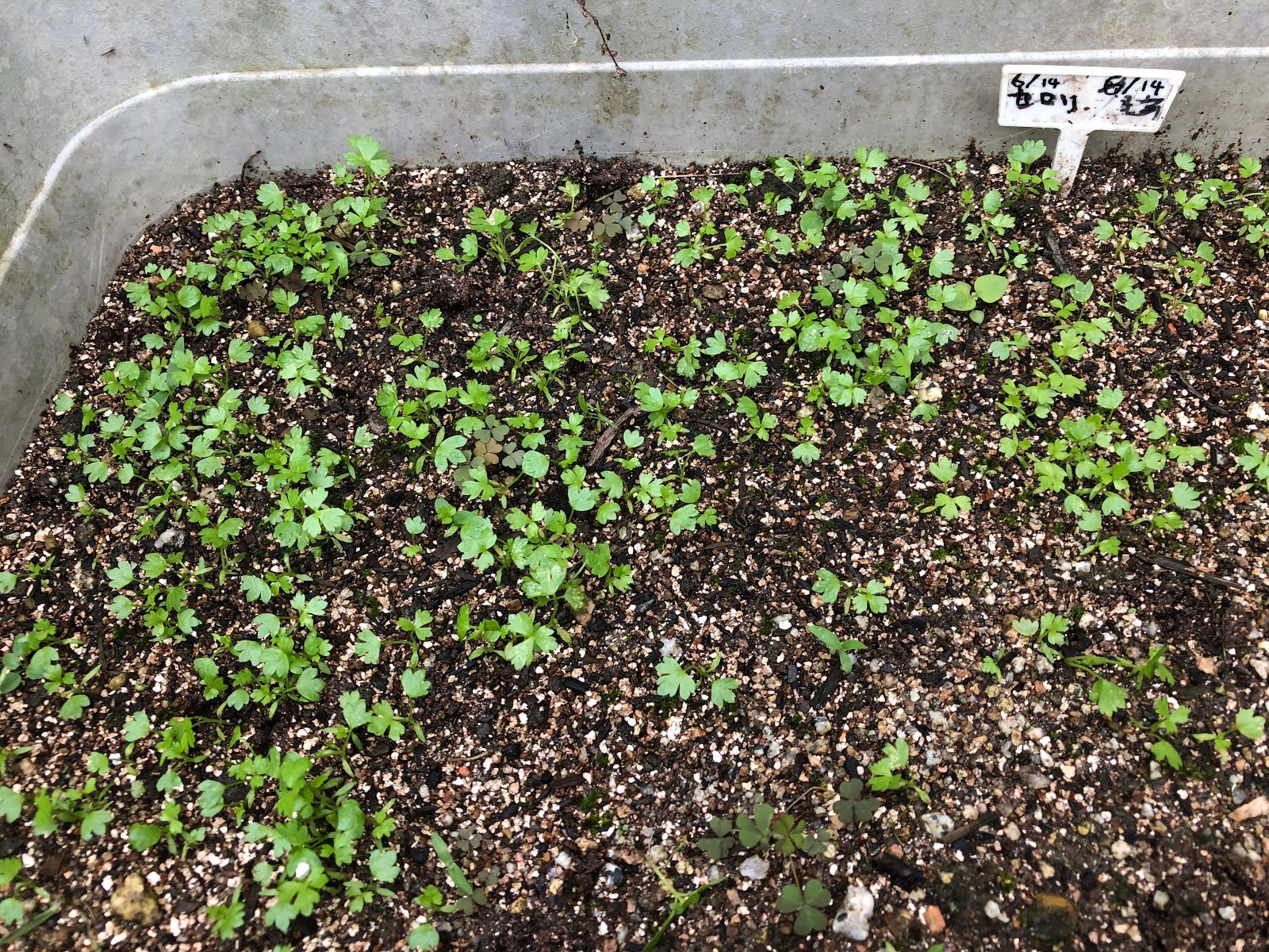 | 種蒔き時期としては最も遅かったようだが、芽出しは問題なし。 |