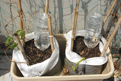 先日トライしたペットボトルによる点滴灌水法、3時間しか持たなかった。