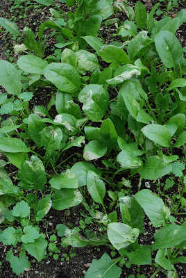 地植えのこのホウレンソウは食べれそうにないが、病原菌を広げないためにも早めの焼却処分が勧められている。残念!