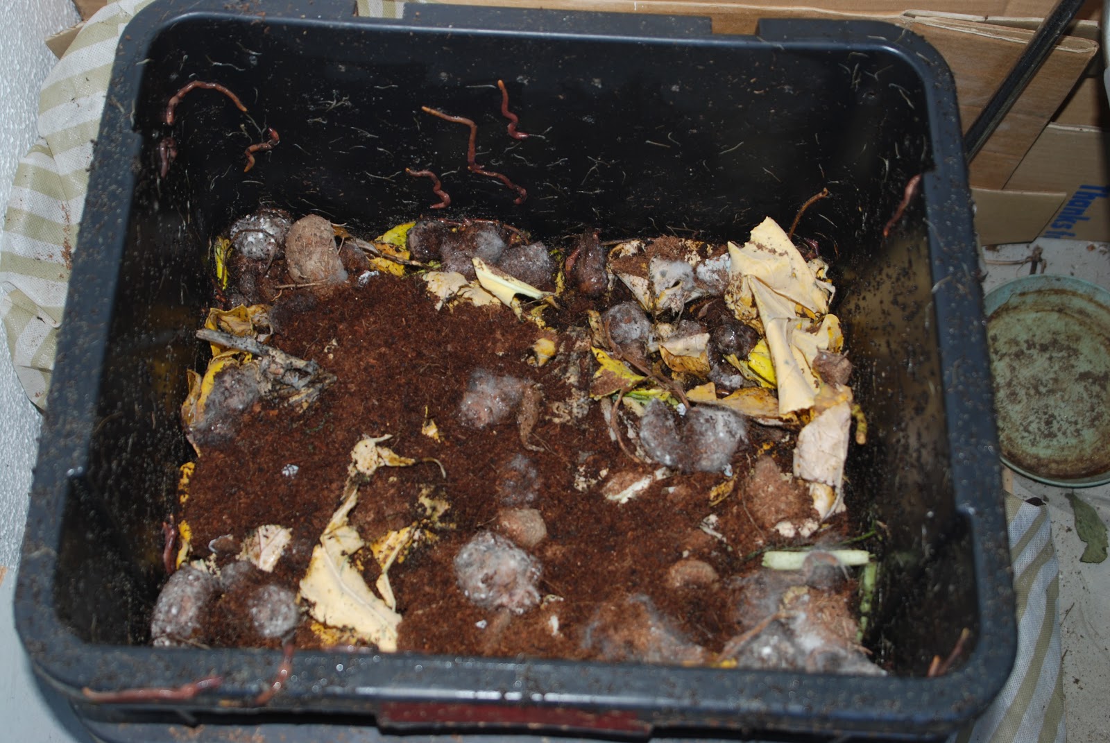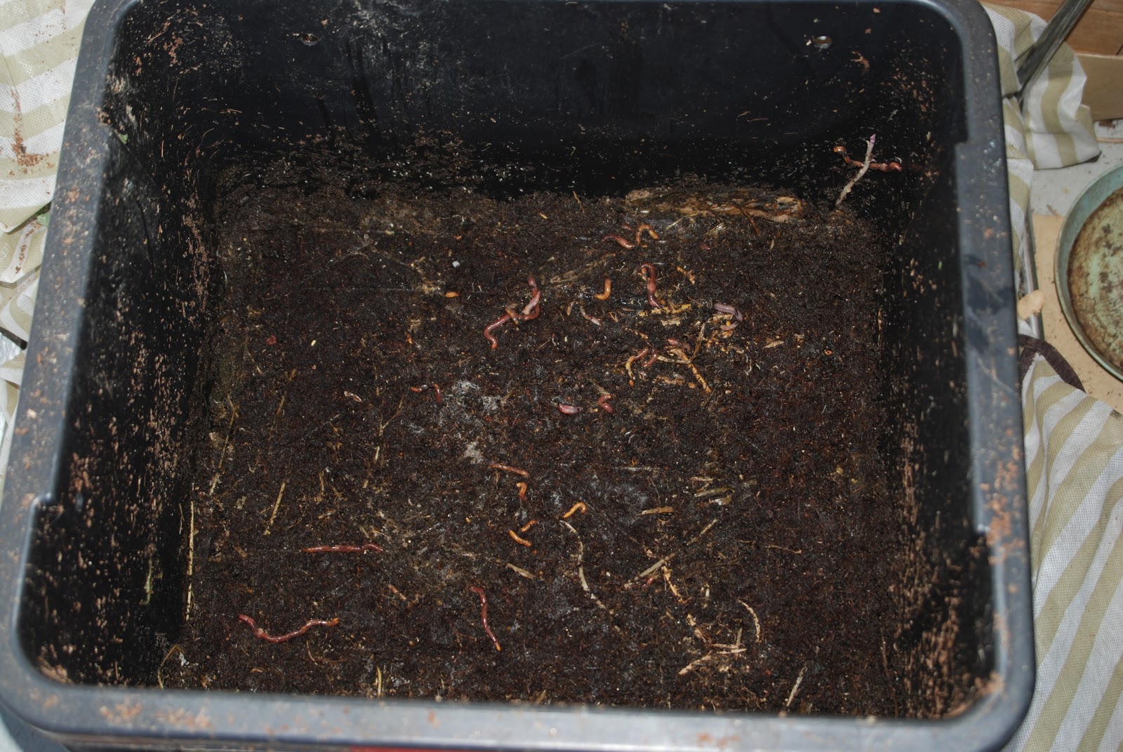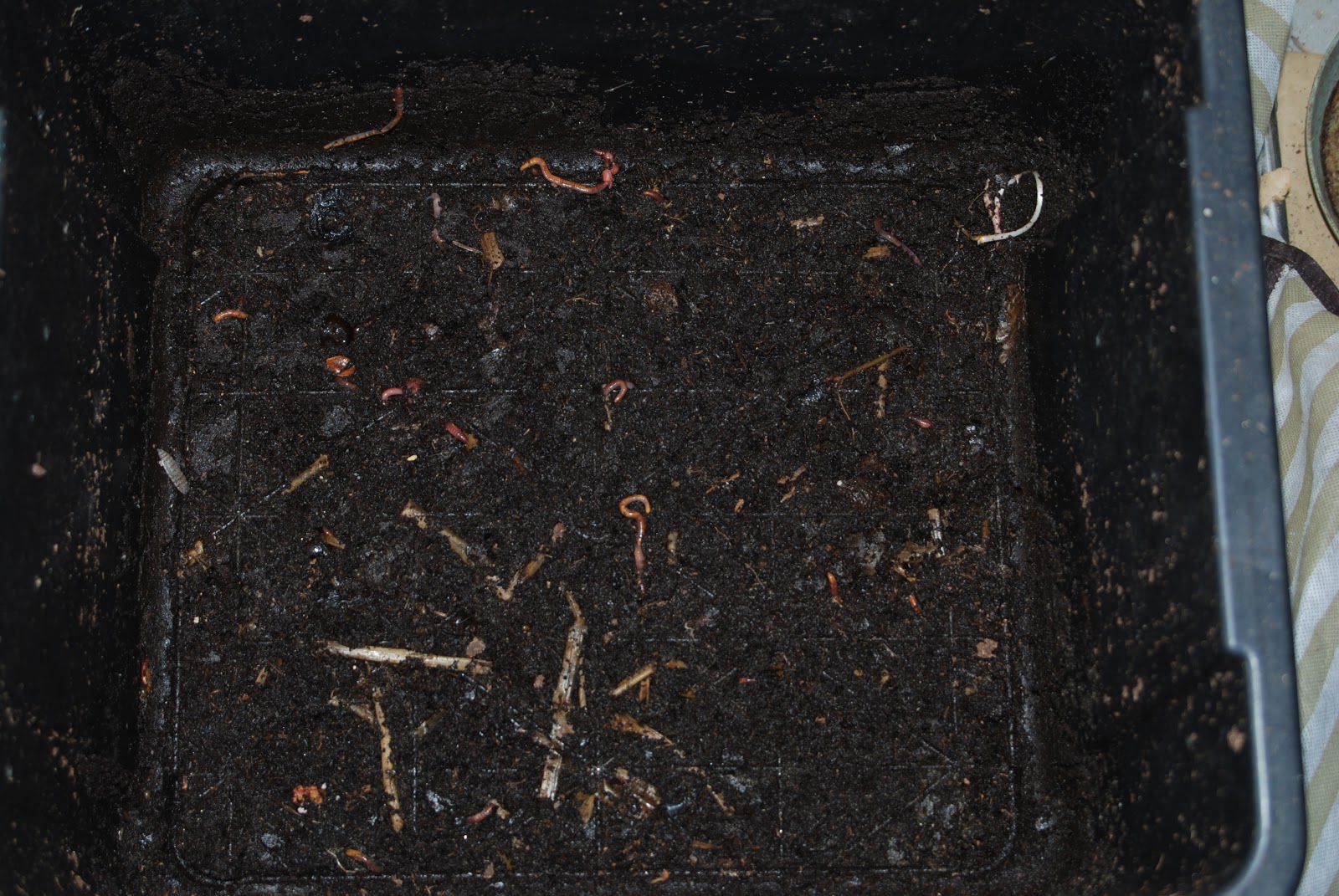 堆肥内の赤ちゃんや子供ミミズ:ざっと見たところ見つからなかった。