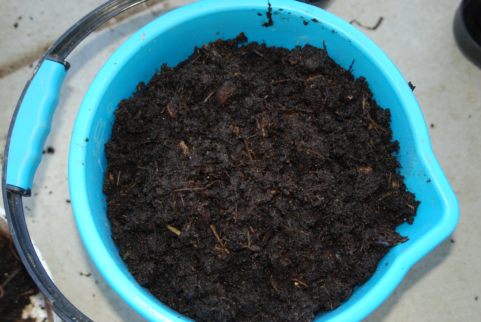 | こちらは、食物繊維やサツマイモの食べカスなど堆肥から外したもの。 内容がウェットで分別が面倒だったので、かなりの収穫可能な堆肥もこの中に入っている。 これらは新しく最上段になるボックスに、分別したミミズ君や新しい餌と共に戻した。 |