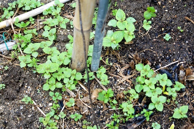毎年こぼれ種からこんな新芽が出るので、これらの中から立派そうなものを2〜3本を畝に植え付けしているのだ。