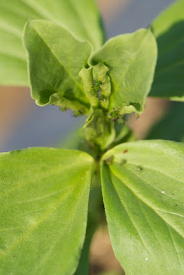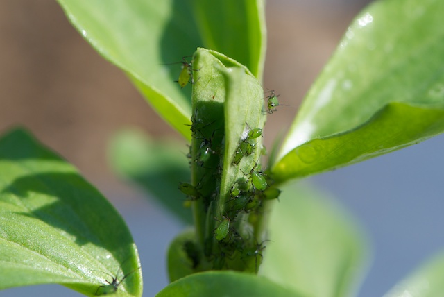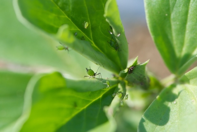 苗は元気に育っているように見えたが、最初の写真のように、早くもアブラムシが集まっていたのだ。