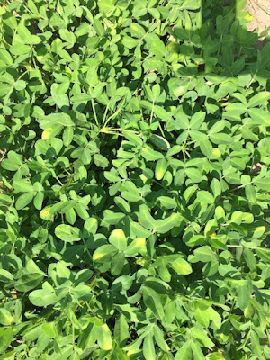 | 1つの苗が約1m径の広がりを見せている。 これだけの苗の勢いがあれば、土に刺さった子房柄がたくさんあると思った。 |
