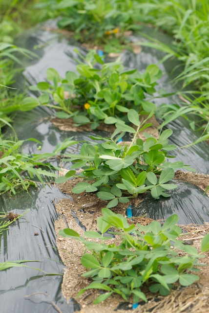 そこで、雑草の勢いが若干弱くなった7月の終わり頃から、少しづつ落花生のマルチを剥いでいった。