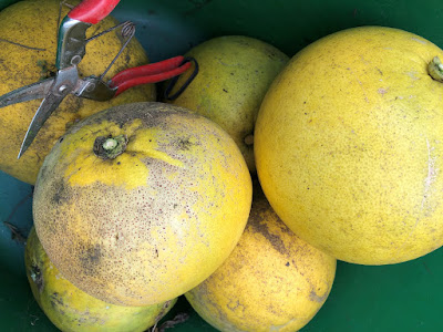 この砂糖漬けをくださったおばあちゃんは、俳句好きで、時に畑で仕事をしているときに、その俳句を紹介されたり野菜や鳥の話などをしているのだが、先日たくさん余っていたすす病で汚れた八朔をお裾分けしていた。
