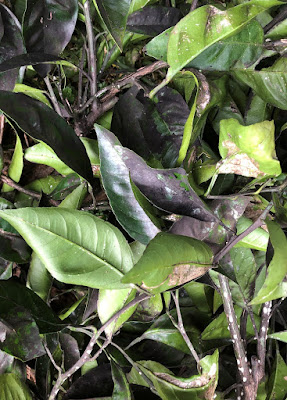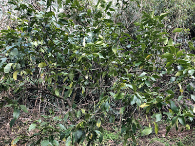 剪定が終わった八朔の木はこんな感じで、葉が少し反り繰り返っている。