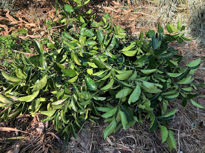 まだ今季のミカン類の収穫がすべて終わったわけではないが、これまで大いに楽しませてもらったミカン類の木に対し感謝の気持ちを込めて、剪定とお礼肥(有機肥料として鶏糞)を施した。