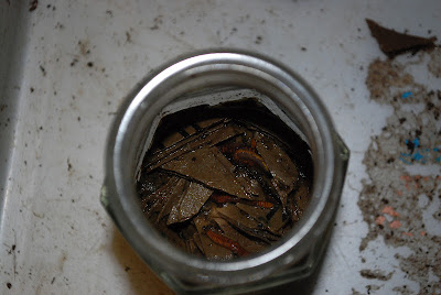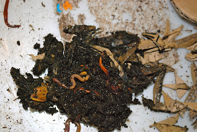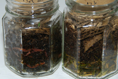 広葉雑草の瓶の蓋を外すと切り刻んだダンボールまでウェットな状態。そこに何匹かみみず君の姿も見える。