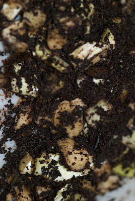 確かにこの時期、ミミズ小屋の餌を覗いてみても、比較的よく食べられているのは冷凍解凍後の柔らかい餌だけで、芋類や葉っぱ野菜の茎など生で与えたものはほとんど食べられてない。