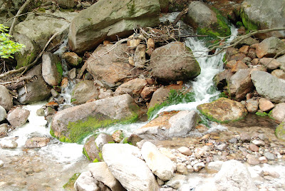 左側に見えるのは川中に沈殿した湯の花、この辺は硫黄の匂いが気持ちよい。
