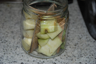 | 4つの区画に入れる冬瓜。右端の冬瓜は直ぐ冷凍庫直行。6時間後に解凍。 |