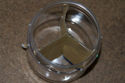 | 出来るだけ観察小屋の底の形状に合わせてダンボールを細工した。 みみず君が他の区画に行かないようにするためだ。 |