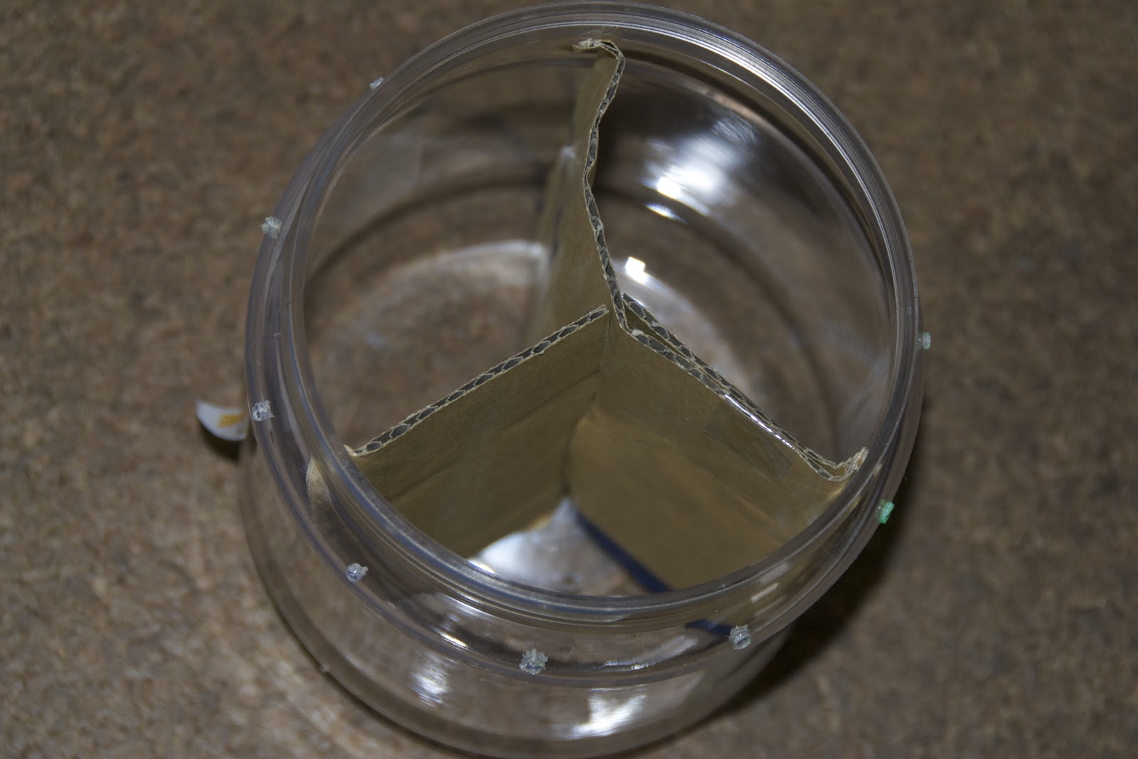 | 出来るだけ観察小屋の底の形状に合わせてダンボールを細工した。 みみず君が他の区画に行かないようにするためだ。 |
