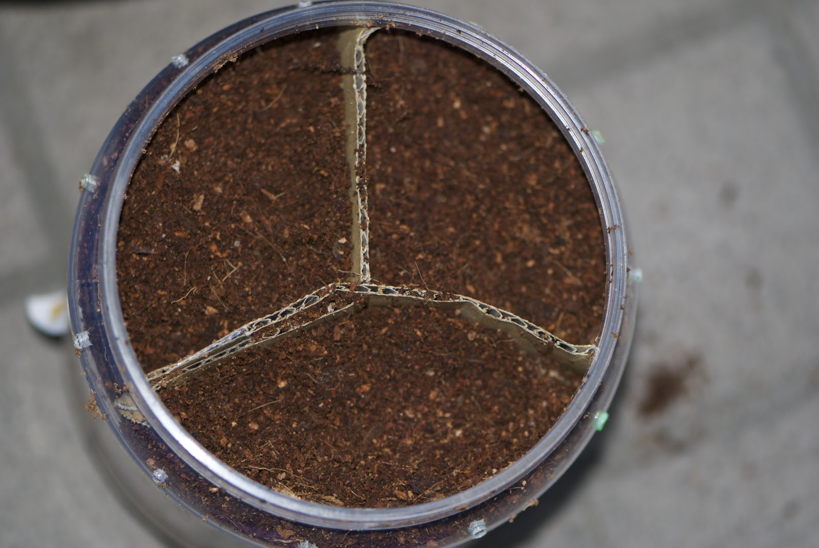 | 上から8割位のところまでココ繊維をまぶした餌を入れ |