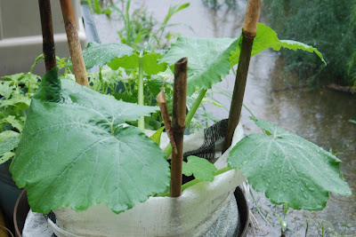 ところで、今年は白ズッキーニの種が手に入ったので、いくつか植えてみた。