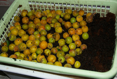 小梅が大量にあったので、適当にミミズ小屋に与えていたのだが、生の小梅でどれくらいの量までなら発酵させずに餌として与えられるかをチェックしたくなった。