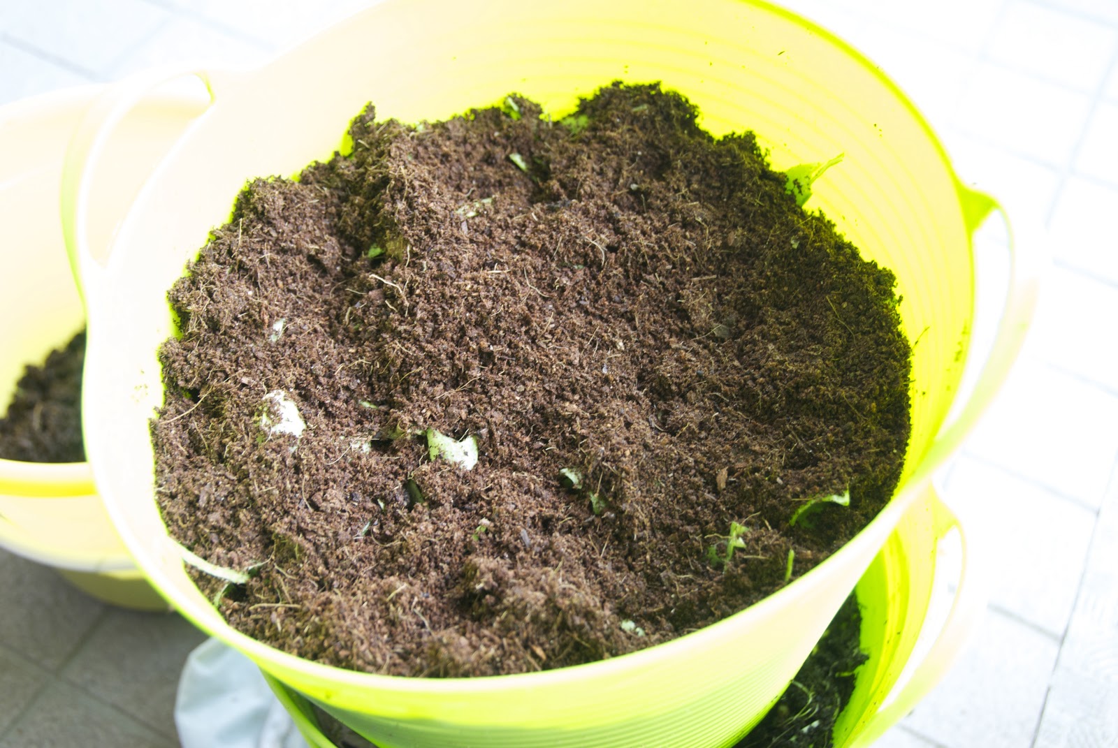 丁度、バケツ2号の堆肥取りをした。バケツ2号は我が家では一番小さいミミズ小屋なので、上段に入れる餌をグリーンピースの莢単独にして、ミミズ君の餌;豆の莢 をやってみることにした。