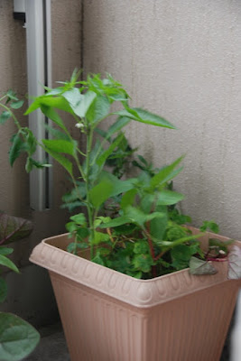 ところで、我が家の菜園には、シシトウもツルムラサキも十二分に収穫出来ていたので、ベランダで野菜が育っても、使うことはないかも? と思っていた。
