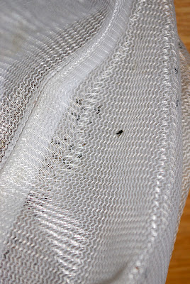 ミミズ小屋を外したあとのランドリーネットのなかに閉じ込められた小バエ。