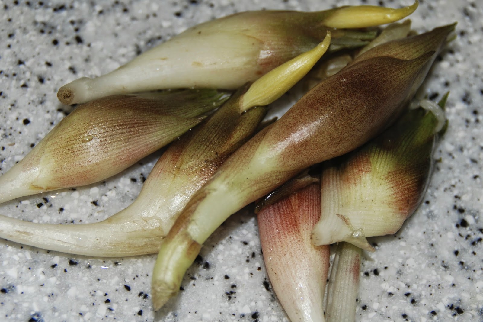 そして、ミョウガの茎葉の株元を見てみると次から次にミョウガ(花芽)が出てきた。