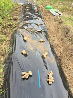 で、気合いを入れて、やや高めの畝を作り、肥料も施して、保存がうまくいった種ショウガを植えていた。