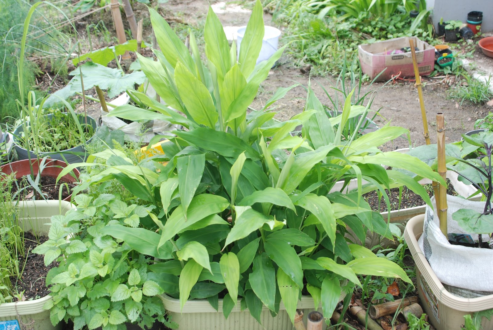 残念ながら、今のところミョウガの花芽は見当たらない。