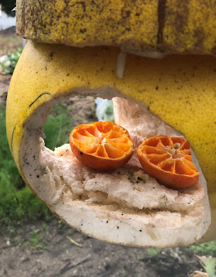 晩白柚の中のミカンは昨日までは食べられていなかったのだが、今朝見るとほぼ完食されていた。