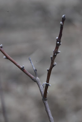 | こちらは2年前枯れかけて、今は復活しかけているアーモンドの木。 昨年よりはかなり元気になった。 |