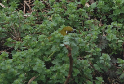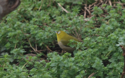 畑仕事はお休みで、暇な時間には遊びに来ているメジロ君を眺めていた。