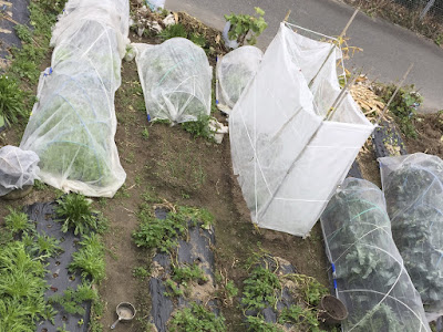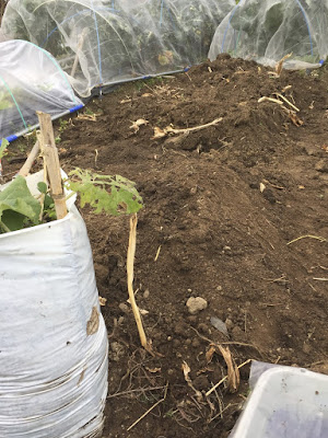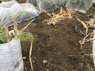 | 枯れた松葉ではうまくいかなかったが、今年はいろいろな野菜を土に埋めている。 |