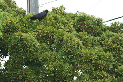 よく見ると、ここ数日で実が一気に赤くなってきた。 で、やってくるカラスの数も増えてきた。 |