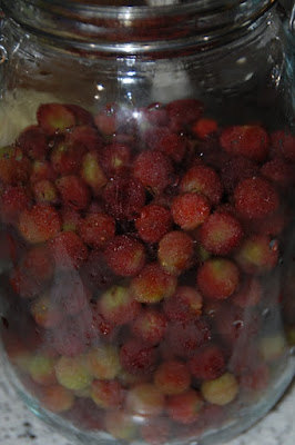 酒を足す前のヤマモモ。 これくらい赤い実を選んでいたら大丈夫と思っていた。 |