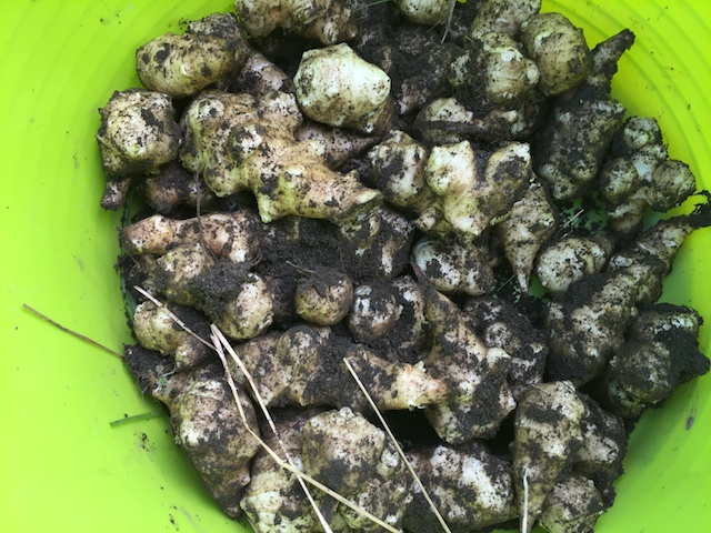 で、収穫状況は?というと、今年のヤーコン、やっぱり大豊作だった。