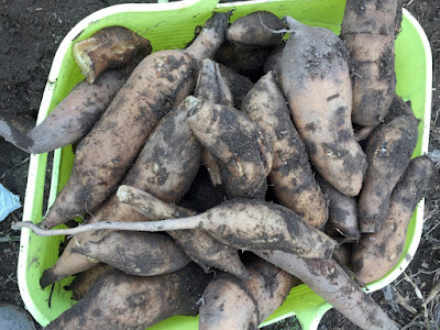 さすがにこのまま置いていたら芋が腐れるだろうと、15〜6株残っていたものを昨日すべて掘り起こしてみた。