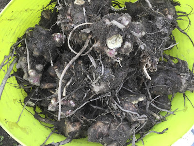 下の方には出来の悪い畝から収穫した小さなヤーコンが詰まっている。 しかし、それでも文句なしの収穫量だ。 |