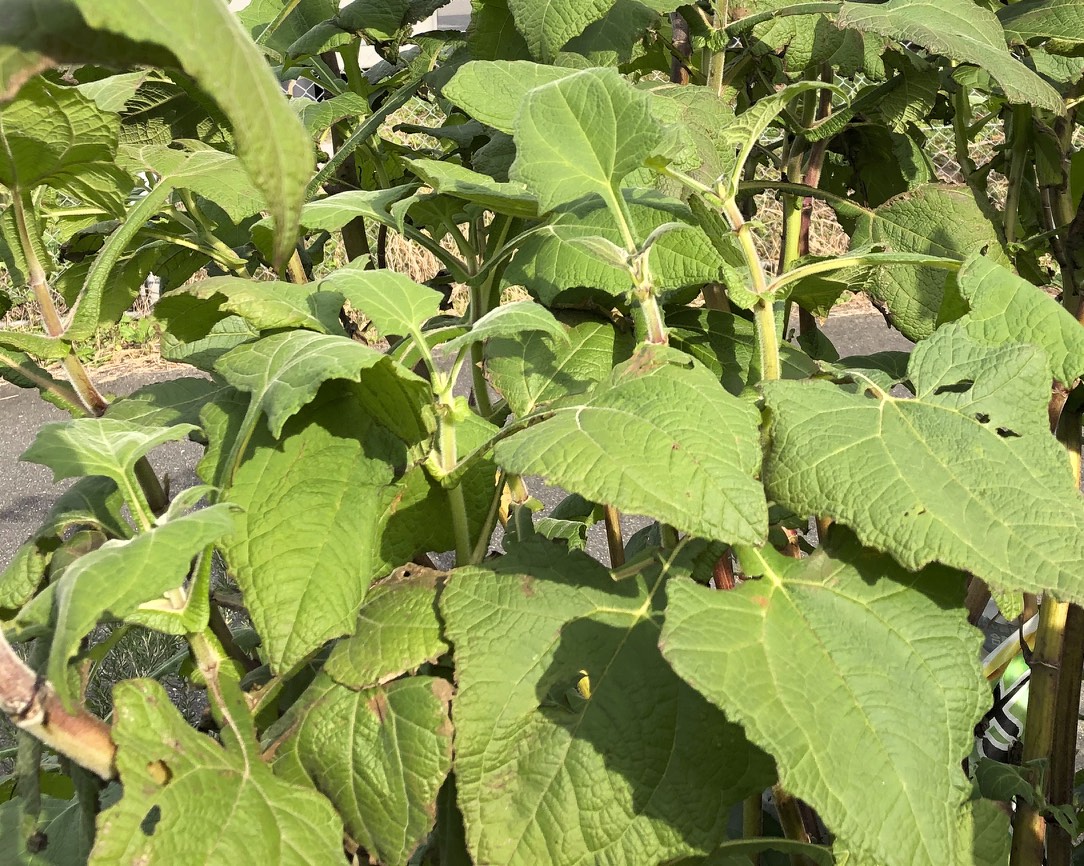 葉は畝にたくさんの株を育てている第2菜園より、1本だけ植えていた第1菜園の方が若干きれいだったので、そこから収穫した。