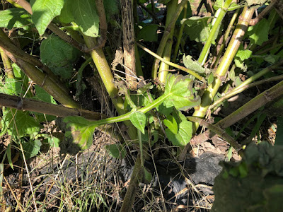 ヤーコン芋の収穫は早い年は11月終わりからやっていたが、元気な株の茎元を見ると、まだ青々していて収穫にはまだかなり早い感じ。
