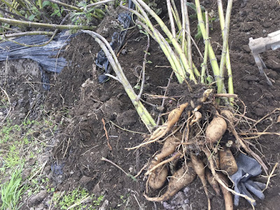 ところで、先日からの寒さで、一気にサツマイモの蔓葉が枯れてきた。