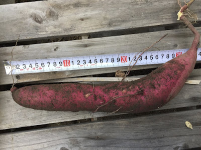 しかし、嬉しいことに、今日は今年初めての20cm超えの芋が採れた。